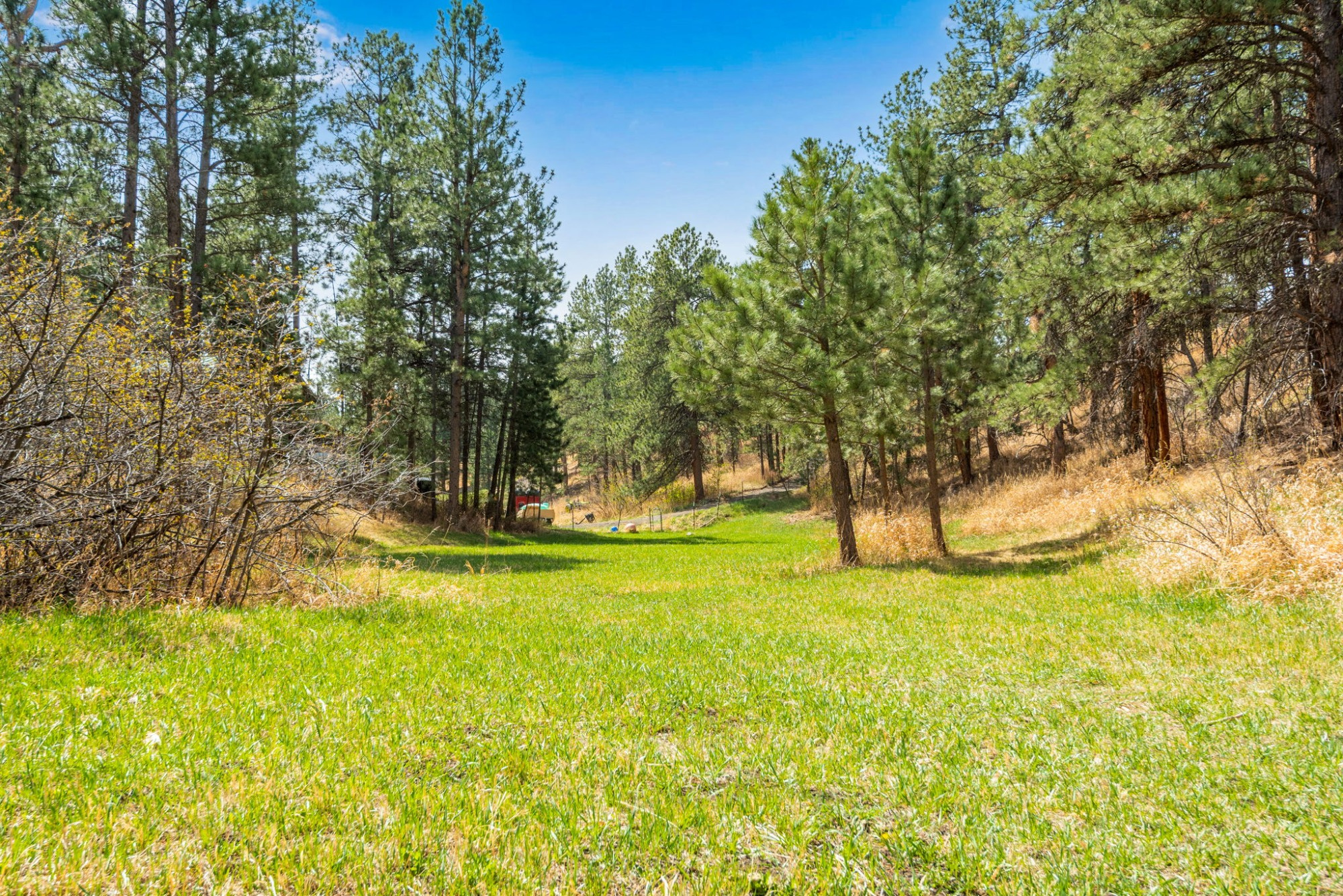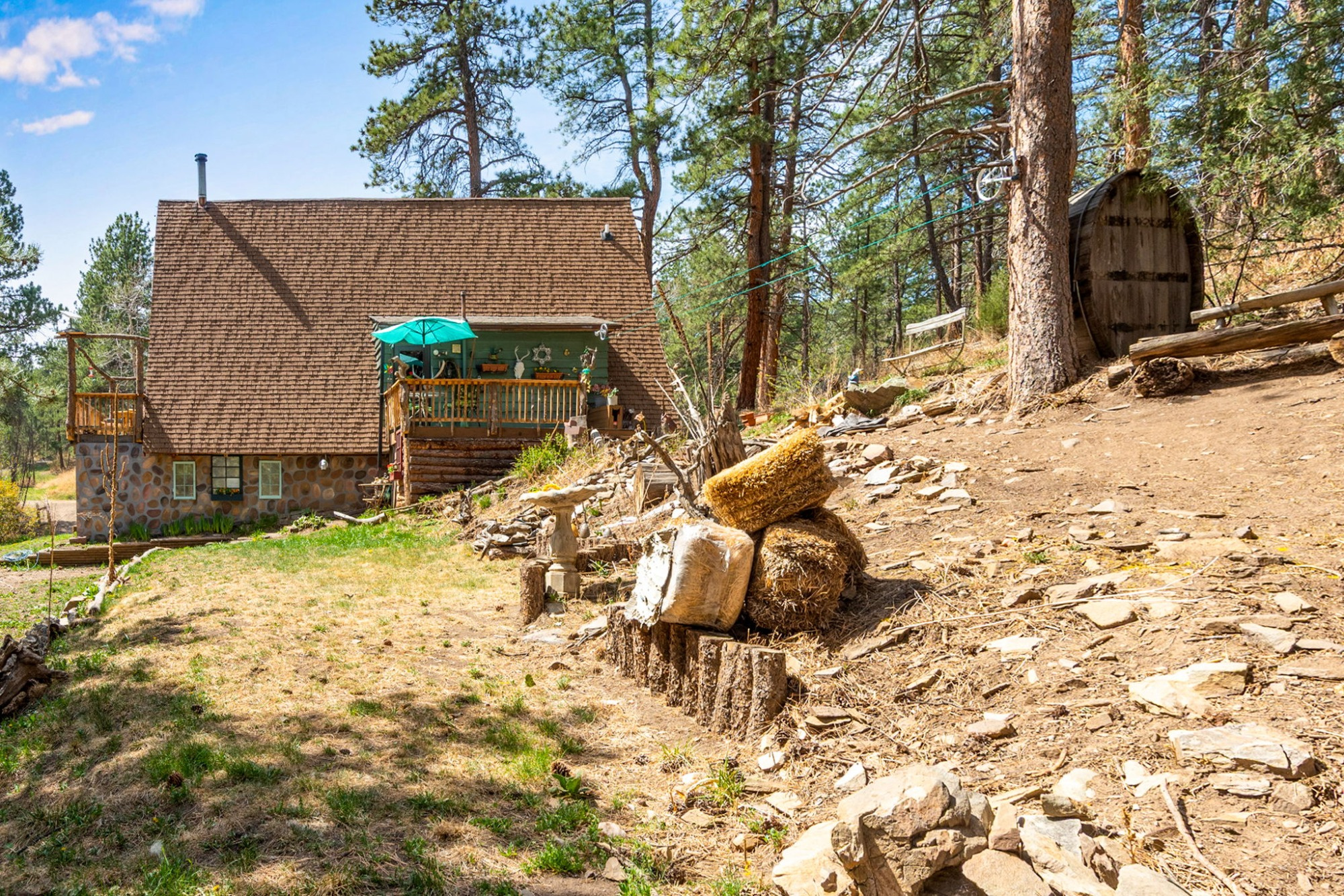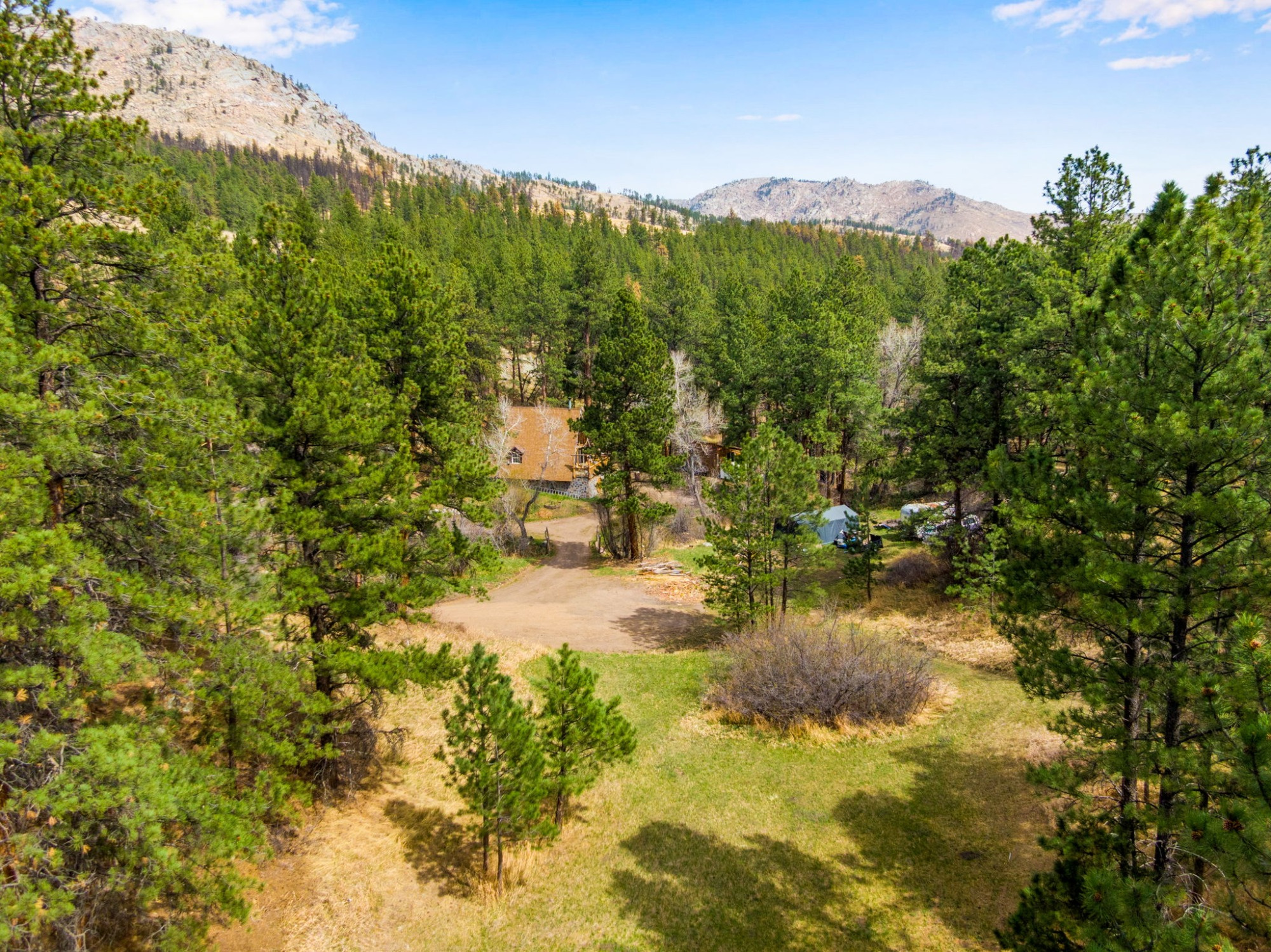 A private half-mile trail leads to a secluded lake and seasonal cascades, while National Forest access sits less than half a mile away. Additional features including supplemental solar, a workshop/shed, forced-air heating, and year-round road access make this a true all-season retreat.