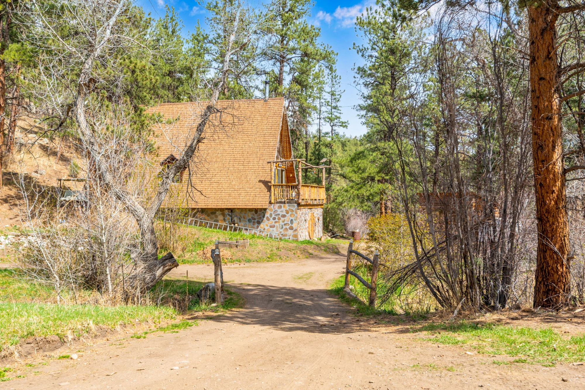 Surrounded by towering pines, a seasonal stream, and peaceful forest views, this absolute gem delivers the perfect blend of architectural character, privacy, and year-round accessibility.