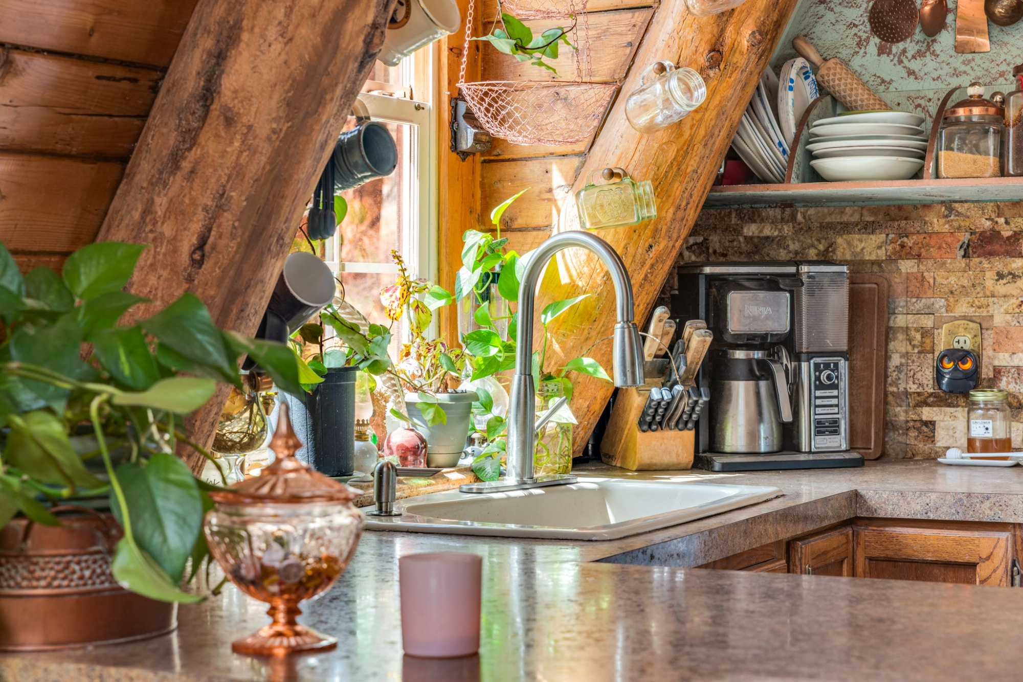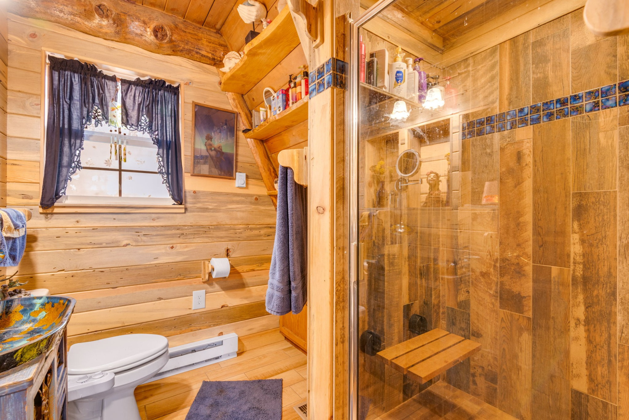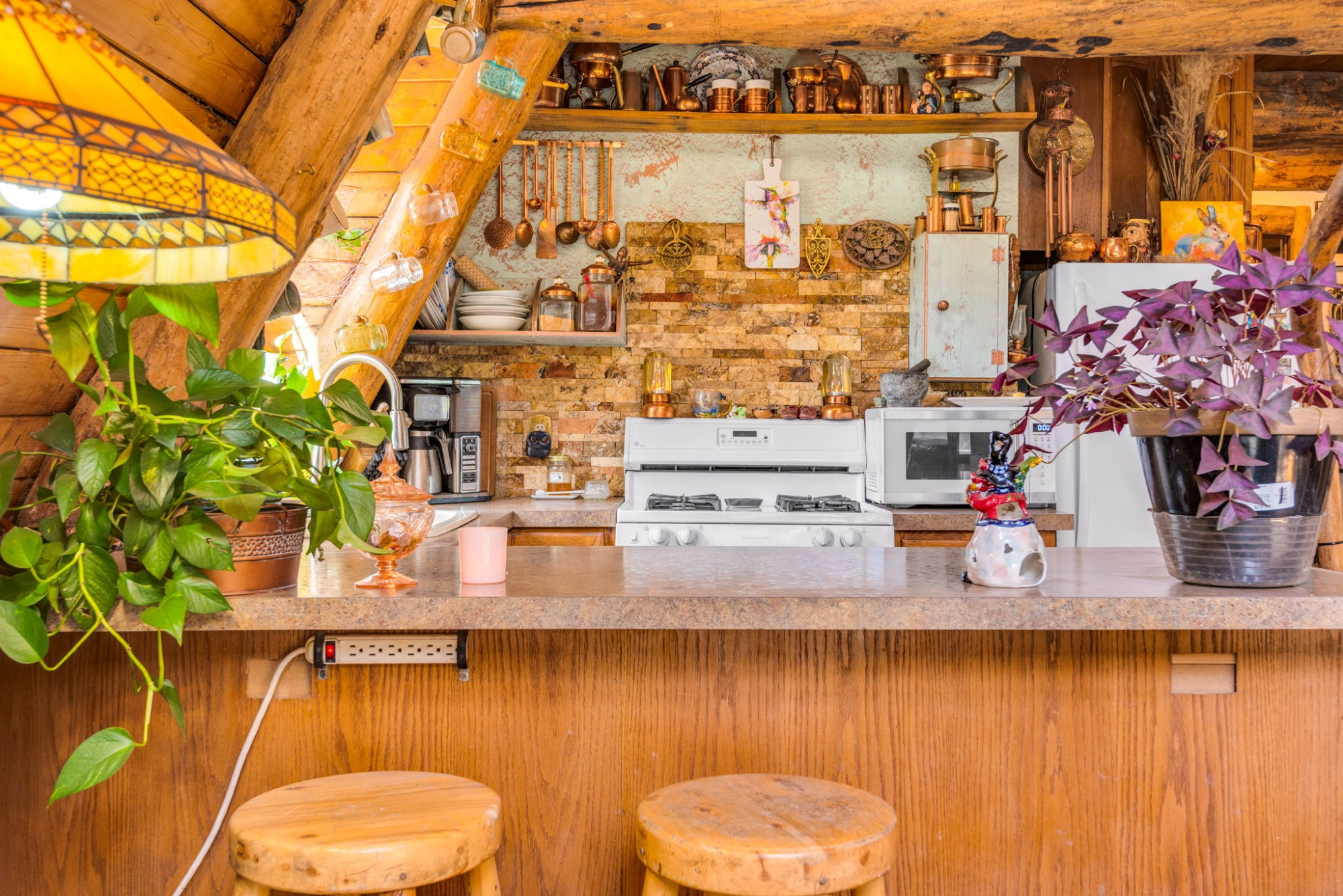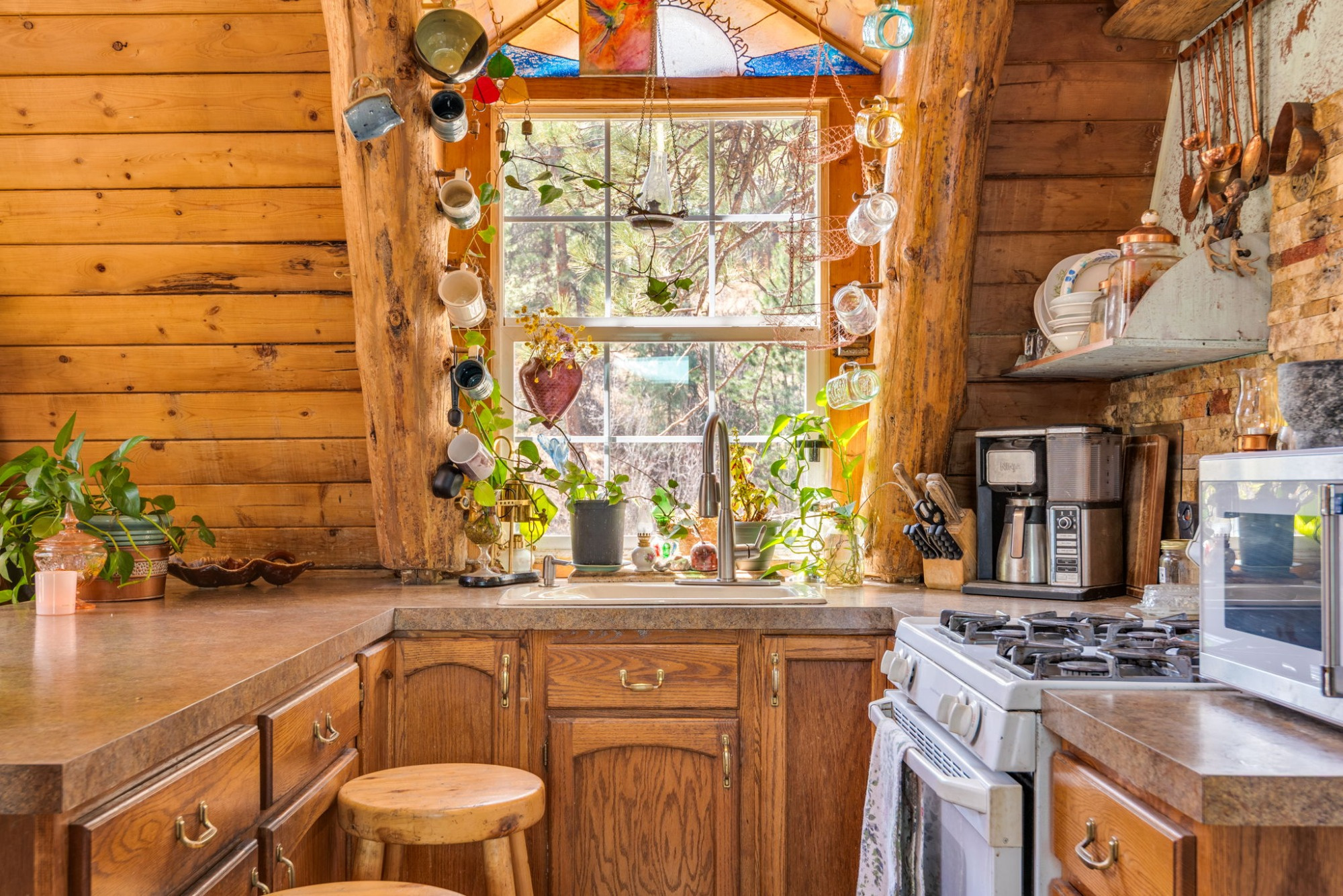 The updated kitchen, remodeled bath, natural stone hearth, and high-efficiency Quadra-Fire wood stove create the perfect balance of rustic charm and modern comfort.